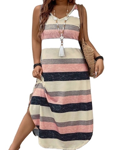 Vestido acampanado con estampado Floral de verano para mujer a la moda, vestido informal sin mangas con cuello en V para vacaciones en la playa