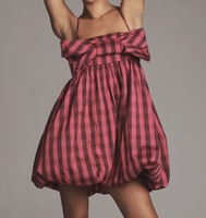 Vestido de verano a cuadros para mujer Sexy Halter espalda descubierta arco burbuja fiesta Fit Flare vestidos elegantes trajes de verano
