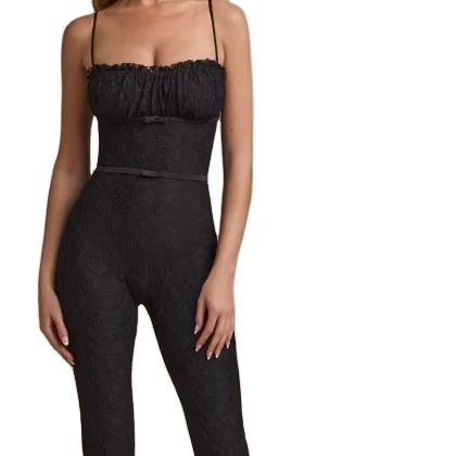 Mono de encaje acampanado con detalle de lazo en negro